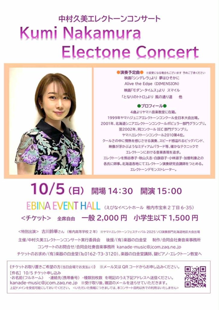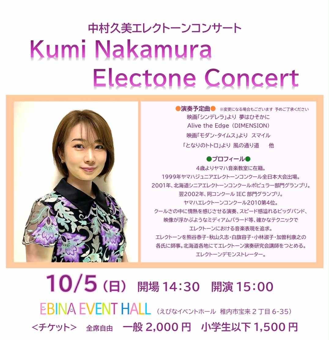 主催/中村久美エレクトーンコンサート実行委員会 後援/(有)楽器の白金堂 制作/合同会社奏音楽事務所